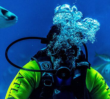 Recreational dives exploring reefs, marine life, caves, wrecks, and landscapes.